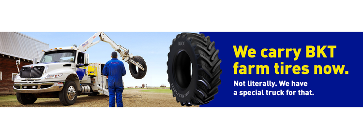 We know farming in Canada means tackling everything from wet prairie fields to rocky northern ground. That’s why we’re excited to now carry BKT Farm Tires. Built tough, designed for the challenges of Canadian agriculture, and backed by great value, BKT tires help you get the job done — season after season.